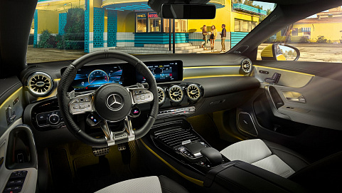 Опциональные темы цветового оформления в новом CLA нажатием на кнопку создают предварительно настроенные атмосферы в салоне. Вид комбинации приборов и мультимедийного дисплея соответственно изменяется, а также освещение салона и режим движения. Но самое приятное заключается в том, что водитель может настроить также темы в соответствии с собственными предпочтениями.