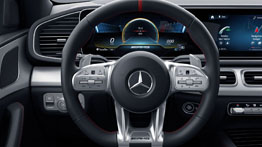 Рулевое колесо AMG с отделкой из кожи наппа нового поколения обладает оптимальной эргономикой для выполнения спортивных маневров. Рулевое колесо имеет характерный дизайн с 3 спицами, усечено в нижней части и оснащено сенсорными кнопками и алюминиевыми подрулевыми переключателями передач. Накладка рулевого колеса с притягивающей внимание надписью «AMG» обеспечивает завершающий штрих.